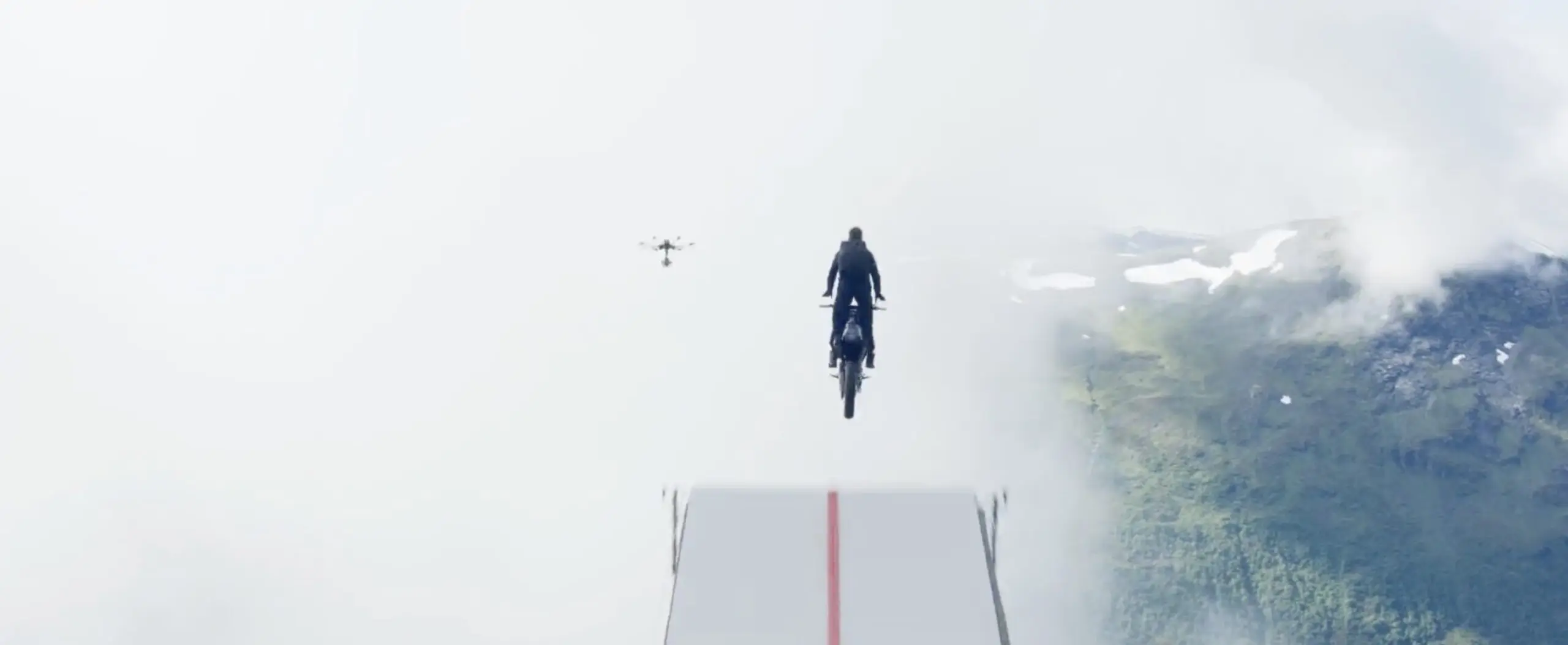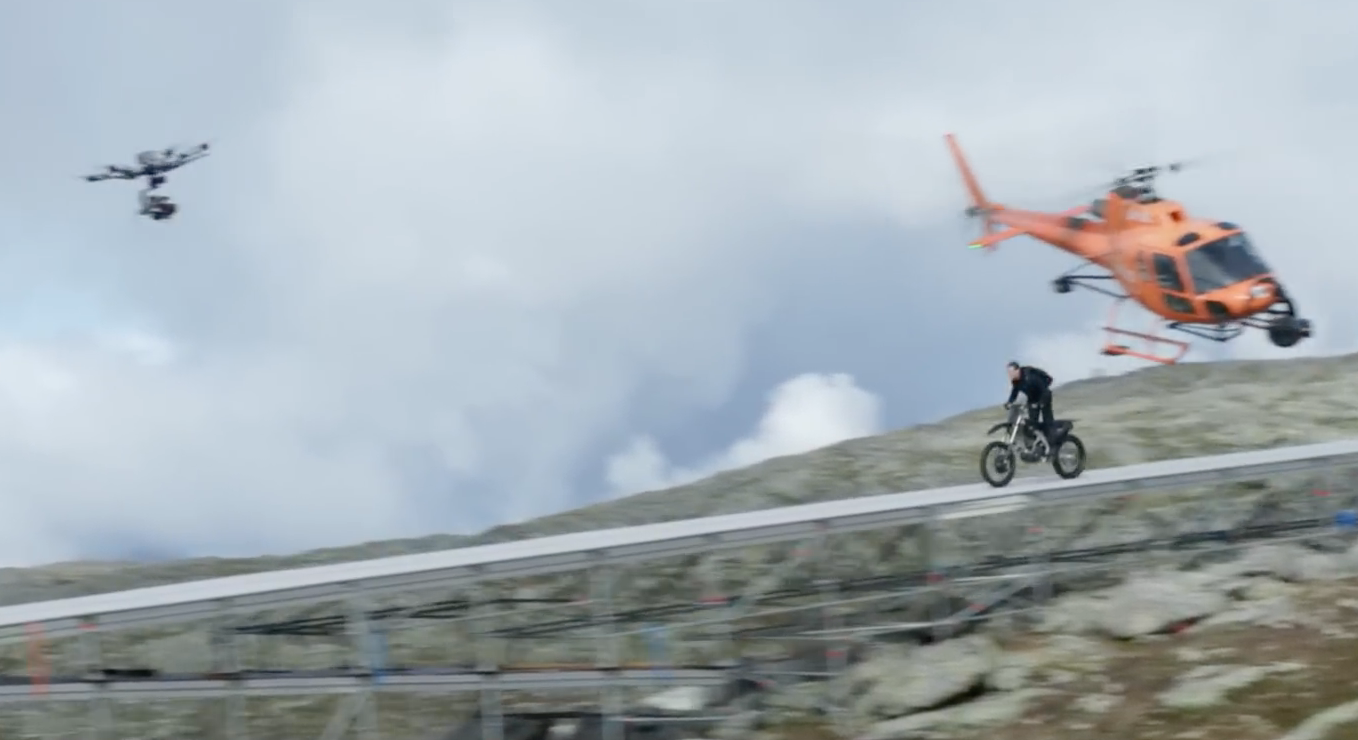 This happened on the first day of principal photography. Director Chris McQuarrie and stunt coordinator Wade Eastwood waited with bated breath as Cruise careered along that ramp and off the Norwegian cliff into the abyss. Months of training ensured a clean dismount from the bike and a perfect BASE jump.