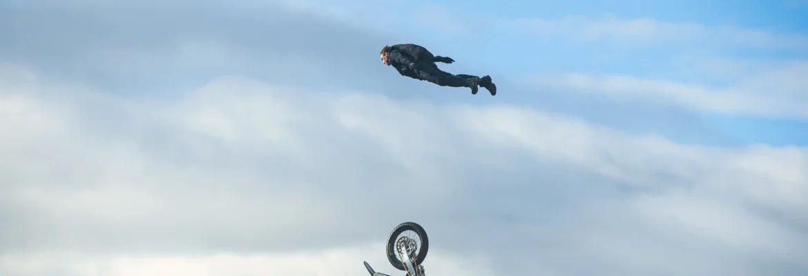 The motorbike BASE jump executed by Tom Cruise in Mission: Impossible – Dead Reckoning was promoted by both Paramount and the media as “the biggest stunt in cinema history.” The claim is contentious. James Bond had already driven a motorbike off a cliff in GoldenEye and BASE jumped into a pilotless plane.